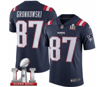 Your Position: Home>NIKE NFL Jerseys>Nike New England Patriots>2017 Super Bowl LI 51 NFL Jersey>Youth Super Bowl LI 51 NFL Jersey>Youth Nike New England Patriots #87 Rob Gronkowski Limited Navy Blue Rush Super Bowl LI 51 NFL Jersey