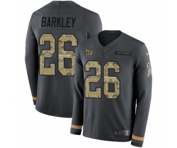 Youth Nike New York Giants #26 Saquon Barkley Limited Black Salute to Service Therma Long Sleeve NFL Jersey
