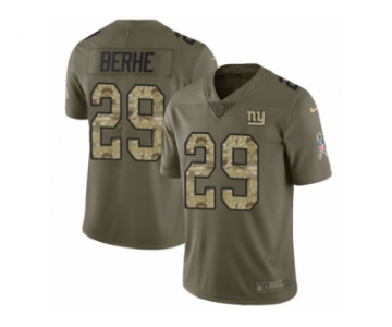Youth Nike New York Giants #29 Nat Berhe Limited Olive Camo 2017 Salute to Service NFL Jersey