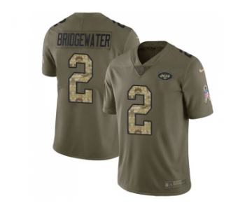 Youth Nike New York Jets #2 Teddy Bridgewater Olive Camo Stitched NFL Limited 2017 Salute to Service Jersey