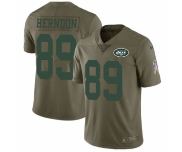 Youth Nike New York Jets #89 Chris Herndon Limited Olive 2017 Salute to Service NFL Jersey