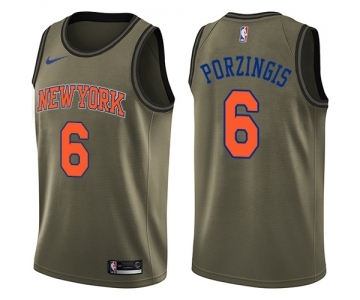 Youth Nike New York Knicks #6 Kristaps Porzingis Swingman Green Salute to Service NBA Jersey