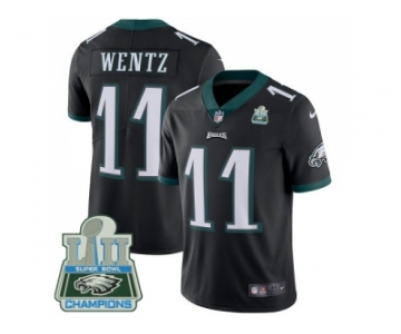 Youth Nike Philadelphia Eagles #11 Carson Wentz Black Alternate Super Bowl LII Champions Stitched NFL Vapor Untouchable Limited Jersey