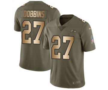 Youth Nike Ravens #27 J.K. Dobbins Olive Gold Stitched NFL Limited 2017 Salute To Service Jersey