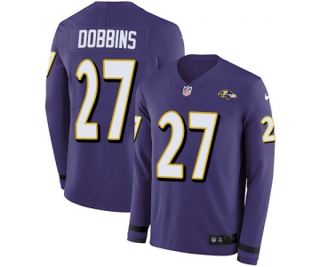 Youth Nike Ravens #27 J.K. Dobbins Purple Team Color Stitched NFL Limited Therma Long Sleeve Jersey