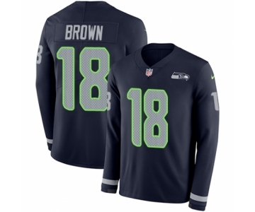 Youth Nike Seattle Seahawks #18 Jaron Brown Limited Navy Blue Therma Long Sleeve NFL Jersey