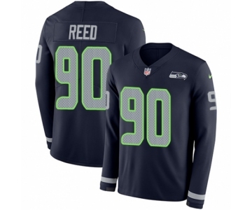 Youth Nike Seattle Seahawks #90 Jarran Reed Limited Navy Blue Therma Long Sleeve NFL Jersey