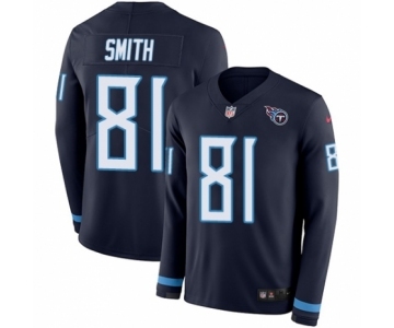 Youth Nike Tennessee Titans #81 Jonnu Smith Limited Navy Blue Therma Long Sleeve NFL Jersey
