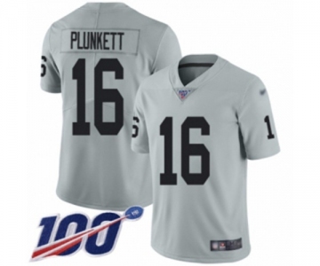 Youth Oakland Raiders #16 Jim Plunkett Limited Silver Inverted Legend 100th Season Football Jersey