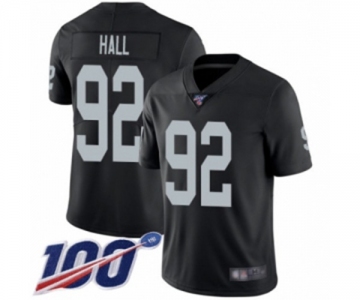 Youth Oakland Raiders #92 P.J. Hall Black Team Color Vapor Untouchable Limited Player 100th Season Football Jersey