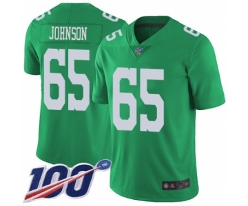 Youth Philadelphia Eagles #65 Lane Johnson Limited Green Rush Vapor Untouchable 100th Season Football Jersey