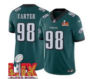 Youth Philadelphia Eagles Jalen Carter #98 Green 2024-2025 Super Bowl LIX F U S E Stitched NFL Jersey