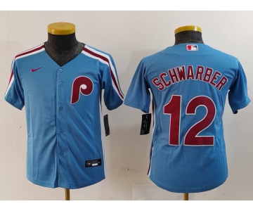 Youth Philadelphia Phillies #12 Kyle Schwarber Light Blue Cooperstown Cool Base Jersey