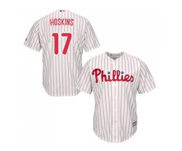 Youth Philadelphia Phillies #17 Rhys Hoskins White(Red Strip) Cool Base Stitched MLB Jersey