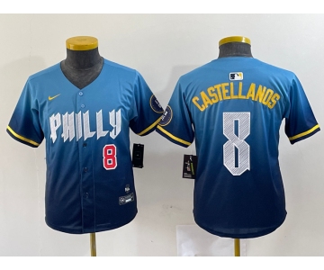 Youth Philadelphia Phillies #8 Nick Castellanos Number Blue 2024 City Connect Limited Stitched Jersey