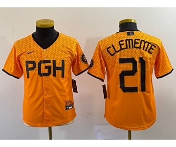Youth Pittsburgh Pirates #21 Roberto Clemente Yellow 2023 City Connect Stitched Jersey