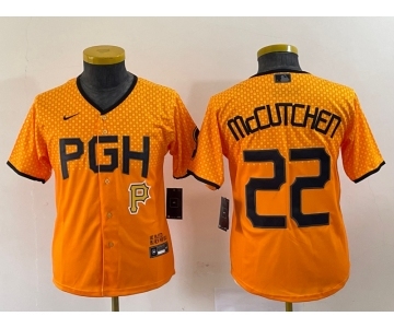Youth Pittsburgh Pirates #22 Andrew McCutchen Yellow 2023 City Connect Stitched Jersey