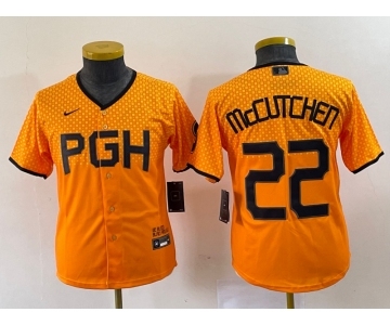 Youth Pittsburgh Pirates #22 Andrew McCutchen Yellow 2023 City Connect Stitched Jersey1