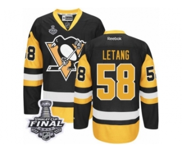Youth Reebok Pittsburgh Penguins #58 Kris Letang Premier Black Home 2017 Stanley Cup Final NHL Jersey