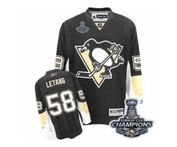 Youth Reebok Pittsburgh Penguins #58 Kris Letang Premier Black Home 2017 Stanley Cup Champions NHL Jersey