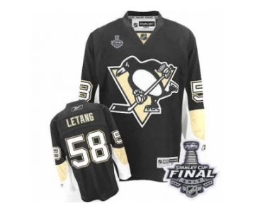 Youth Reebok Pittsburgh Penguins #58 Kris Letang Premier Black Home 2017 Stanley Cup Final NHL Jersey