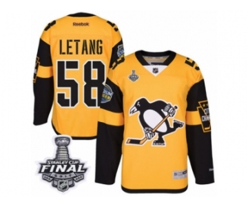 Youth Reebok Pittsburgh Penguins #58 Kris Letang Premier Gold 2017 Stadium Series 2017 Stanley Cup Final NHL Jersey