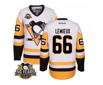 Youth Reebok Pittsburgh Penguins #66 Mario Lemieux Authentic White Away 50th Anniversary Patch NHL Jersey