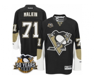 Youth Reebok Pittsburgh Penguins #71 Evgeni Malkin Authentic Black Home 50th Anniversary Patch NHL Jersey