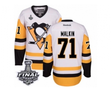Youth Reebok Pittsburgh Penguins #71 Evgeni Malkin Authentic White Away 2017 Stanley Cup Final NHL Jersey