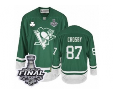 Youth Reebok Pittsburgh Penguins #87 Sidney Crosby Authentic Green St Patty's Day 2017 Stanley Cup Final NHL Jersey