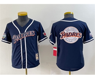 Youth San Diego Padres Team Big Logo Navy Throwback With Patch Stitched Baseball Jersey