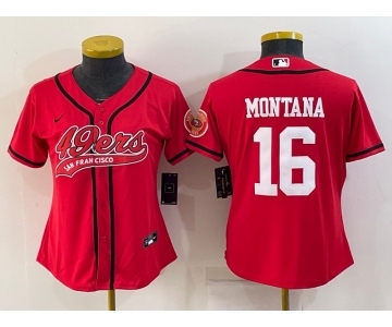 Youth San Francisco 49ers #16 Joe Montana Red With Patch Cool Base Stitched Baseball Jersey