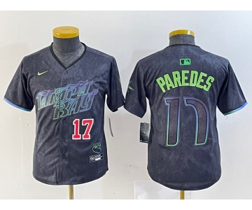 Youth Tampa Bay Rays #17 Isaac Paredes Charcoal 2024 City Connect Limited Cool Base Jersey