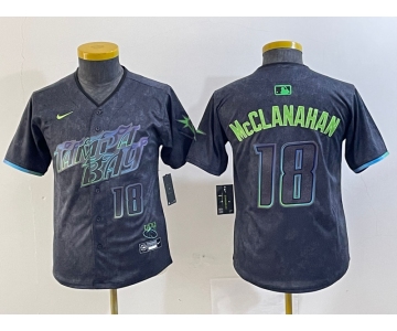 Youth Tampa Bay Rays #18 Shane McClanahan Charcoal 2024 City Connect Player Number Limited Cool Base Jersey