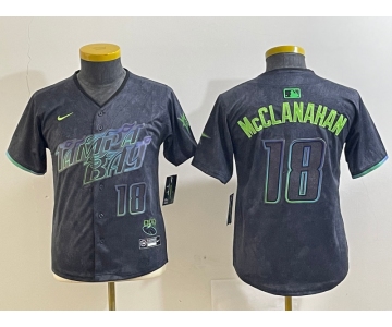 Youth Tampa Bay Rays #18 Shane McClanahan Charcoal 2024 City Connect Player Number Limited Cool Base Jersey