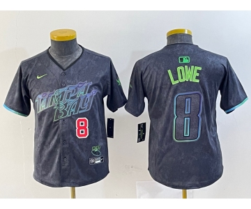 Youth Tampa Bay Rays #8 Brandon Lowe Charcoal 2024 City Connect Player Number Limited Cool Base Jersey
