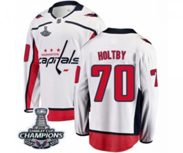 Youth Washington Capitals #70 Braden Holtby Fanatics Branded White Away Breakaway 2018 Stanley Cup Final Champions NHL Jersey