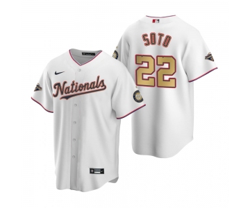 Youth Washington Nationals #22 Juan Soto White Gold 2019 World Series Champions Stitched MLB Cool Base Nike Jersey