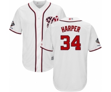 Your Position: Home>MLB Jerseys>Washington Nationals>youth>Youth Washington Nationals #34 Bryce Harper Authentic White Home Cool Base 2019 World Series Champions Baseball Jersey