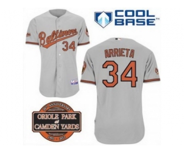 mlb jerseys baltimore orioles #34 arrieta grey cool base[20th anniversary patch]
