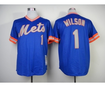 mlb jerseys new york mets #1 wilson blue[1983 m&n]