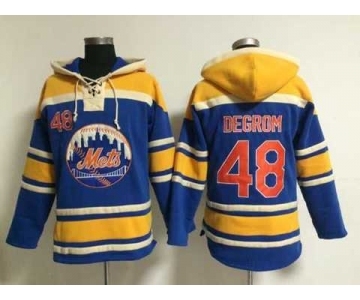 mlb jerseys new york mets #48 degrom blue[pullover hooded sweatshirt]