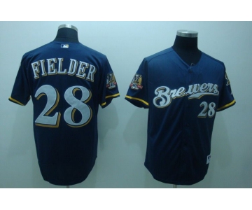 mlb milwaukee brewers #28 fielder blue[40th patch]