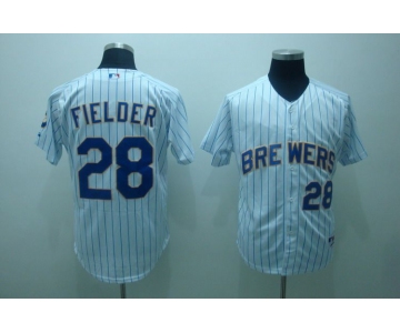 mlb milwaukee brewers #28 fielder white(blue strip)