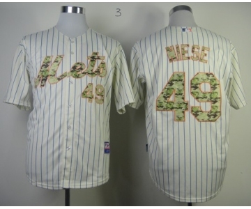 mlb new york mets #49 niese cream(blue strip)[number camo]
