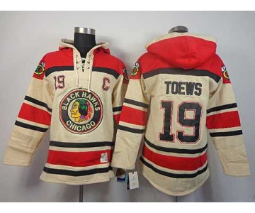 nhl jerseys chicago blackhawks #19 toews cream[pullover hooded sweatshirt][patch C]