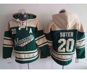 nhl jerseys minnesota wilds #20 suter cream-green[pullover hooded sweatshirt][patch A][suter]