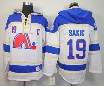 nhl jerseys quebec nordiques #19 sakic white-blue[pullover hooded sweatshirt][patch C]