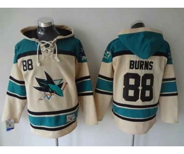 nhl jerseys san jose sharks #88 burns cream-blue[pullover hooded sweatshirt]