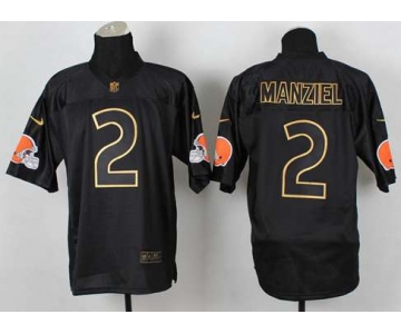 Nike Cleveland Browns #2 Johnny Manziel Black Pro Line Gold Collection Jersey[Elite]